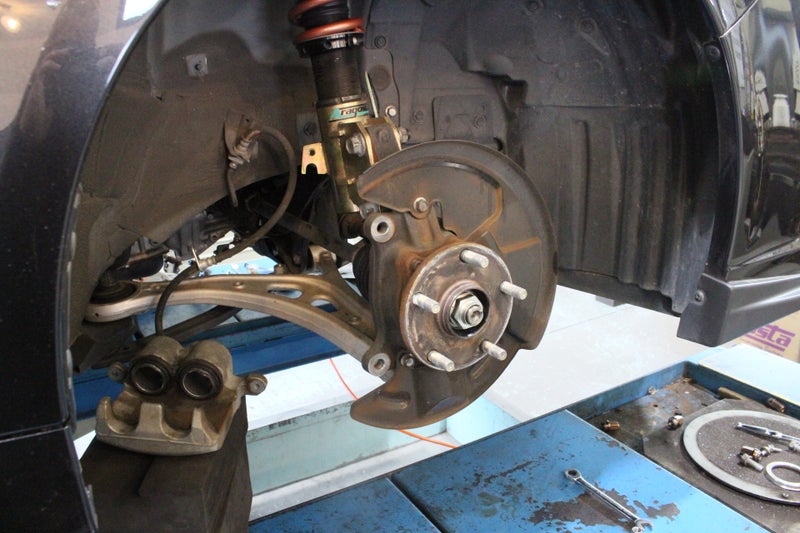 バケモノ作成から年数的にも距離的にも伸びましたので、ぶっ込んだアラゴスタ車高調のオーバーホール・ブレーキ周りフルメンテナンス・タイヤ・アライメントなどのリフレッシュを試みます。